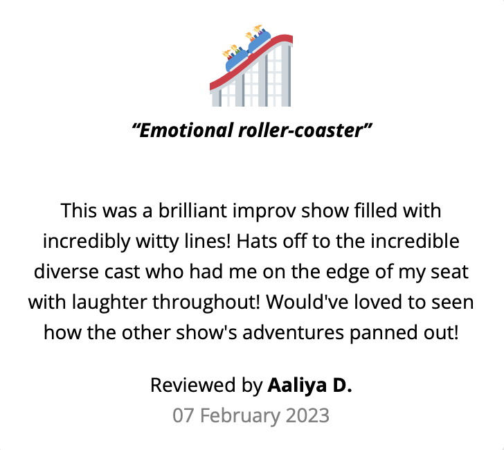 A fun, chaotic and completely unpredictable show that will absolutely keep you entertained for the entire 75 minutes … You could tell the cast was having fun on stage, coming up with some wild and weird scenarios to keep the audience on their toes. There are scandals, drama, betrayal, and heartbreak, as well as some ridiculous, saucy, and funny moments.