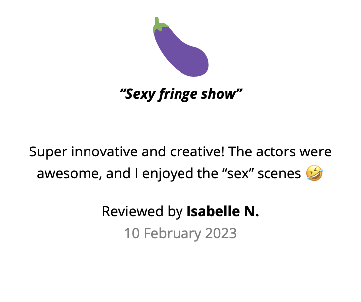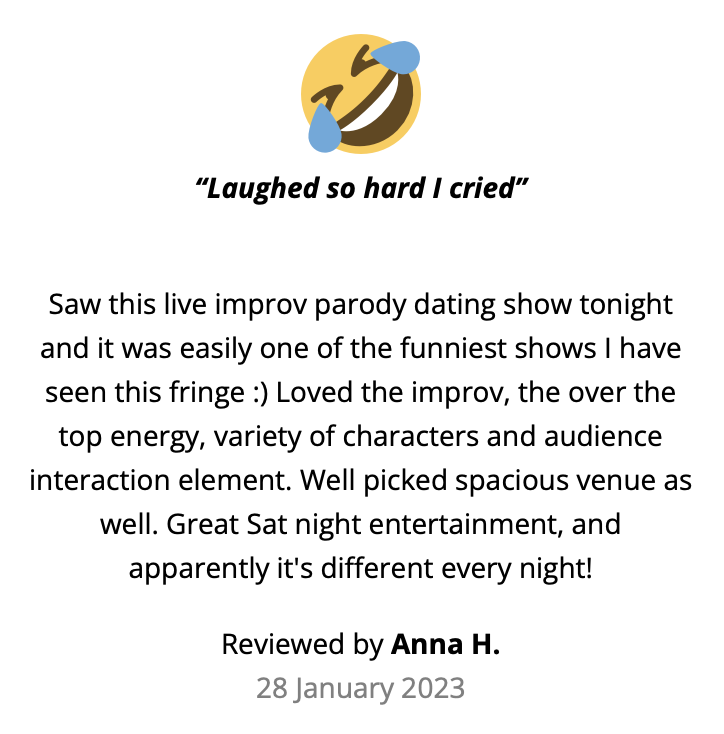 A fun evening filled with surprises and love matches made from heaven, with some interesting twists and negotiations along the way… If you enjoy having a humorous and light-hearted night of entertainment with moderate intensity heat (for a Fringe show), then the Cupid show is a perfect show to go watch.